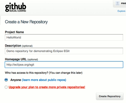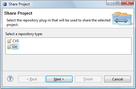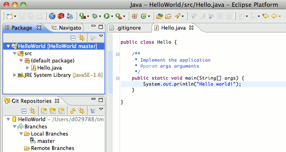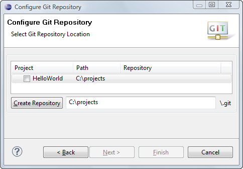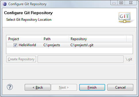 HelloWorld project. If your project already resides in the working tree of an existing Git repository the repository is chosen automatically.