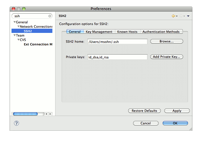 Further information about advanced SSH configuration (such as using Putty or another SSH agent with EGit) is available in the EGit FAQ (section SSH).